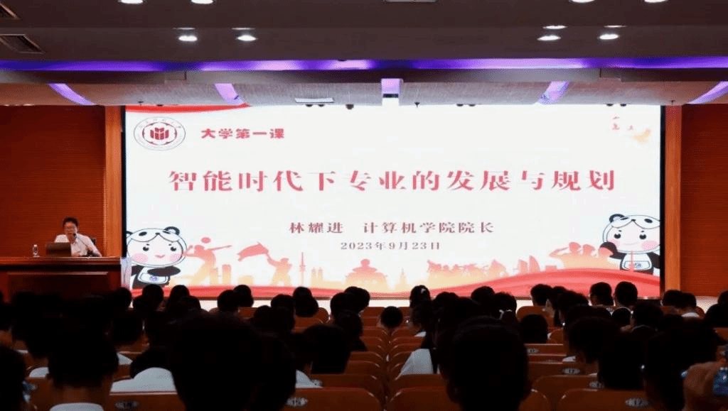 9月23日晚,beat365官网院长林耀进教授以“智能时代下的专业发展与规划”为主题,为全体2023级新生讲授“大学第一课”,并为所联系党支部教工第二党支部成员讲授专题党课。